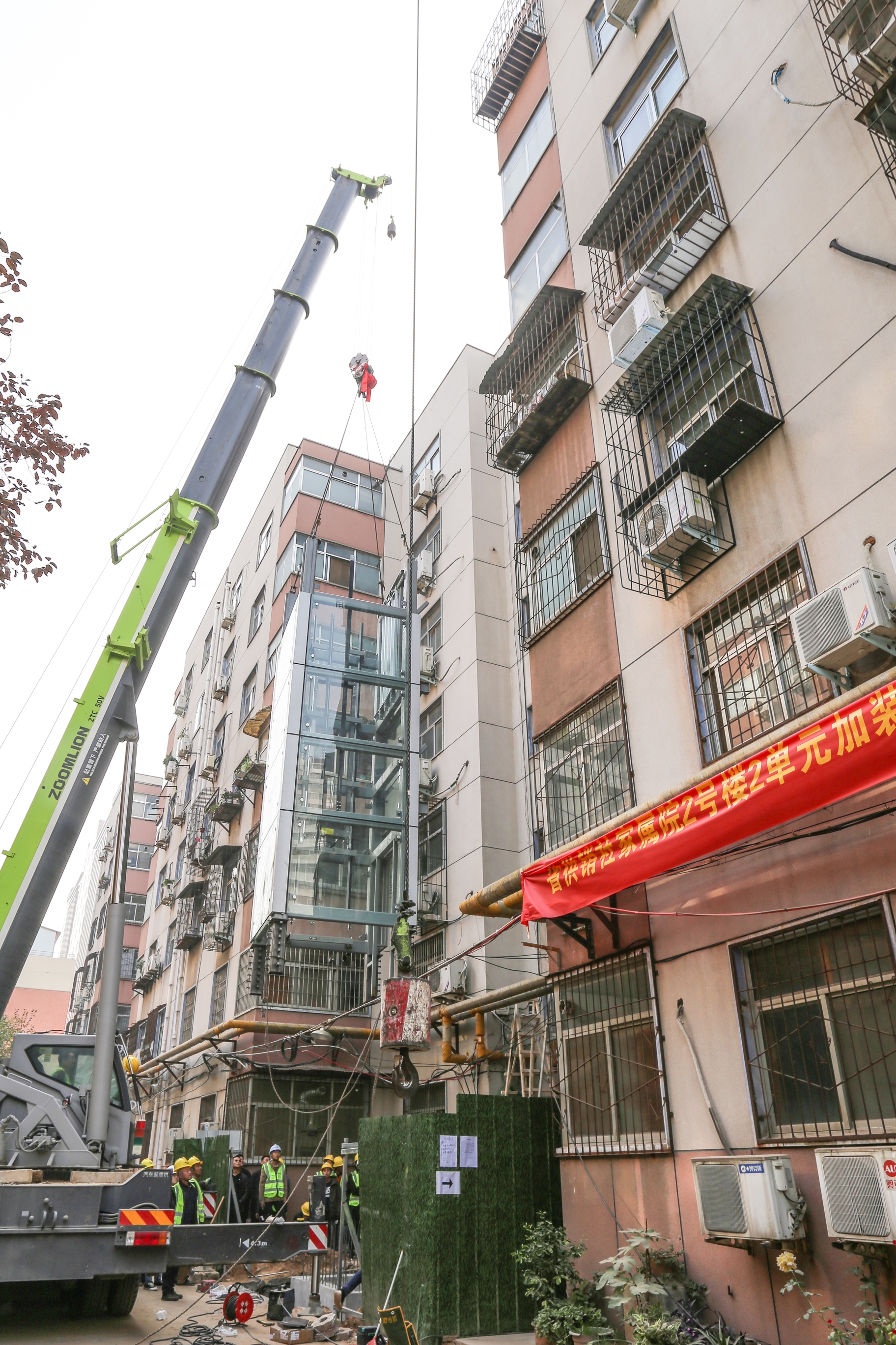 作为备受关注的一项民生工程,这台电梯自带“头号”光环——郑州首台业主筹资且全部业主同意的加装电梯;郑州首台封闭式短连廊半层入户加装电梯;郑州首台在政府老旧小区改造试点开工的加装电梯。