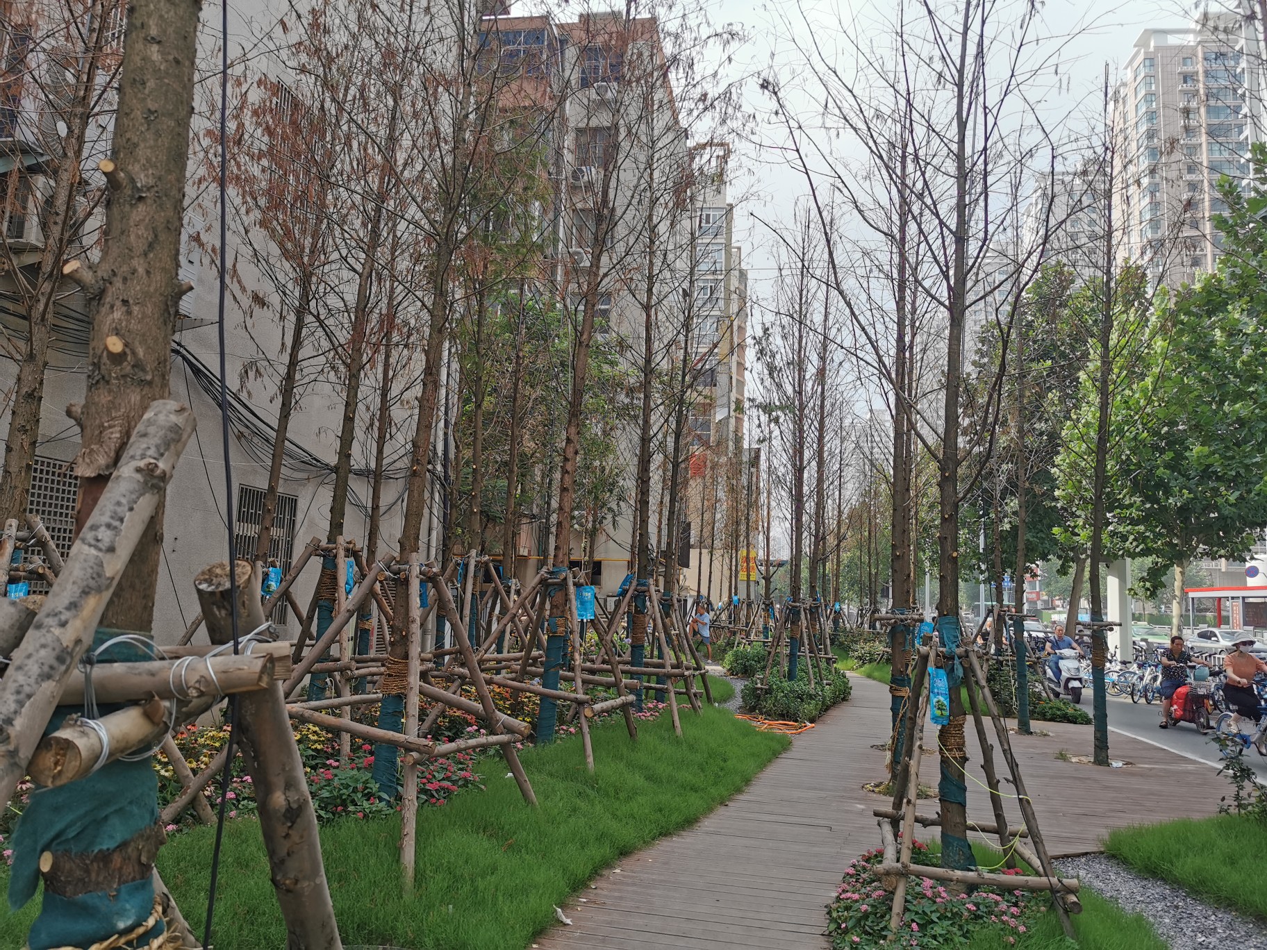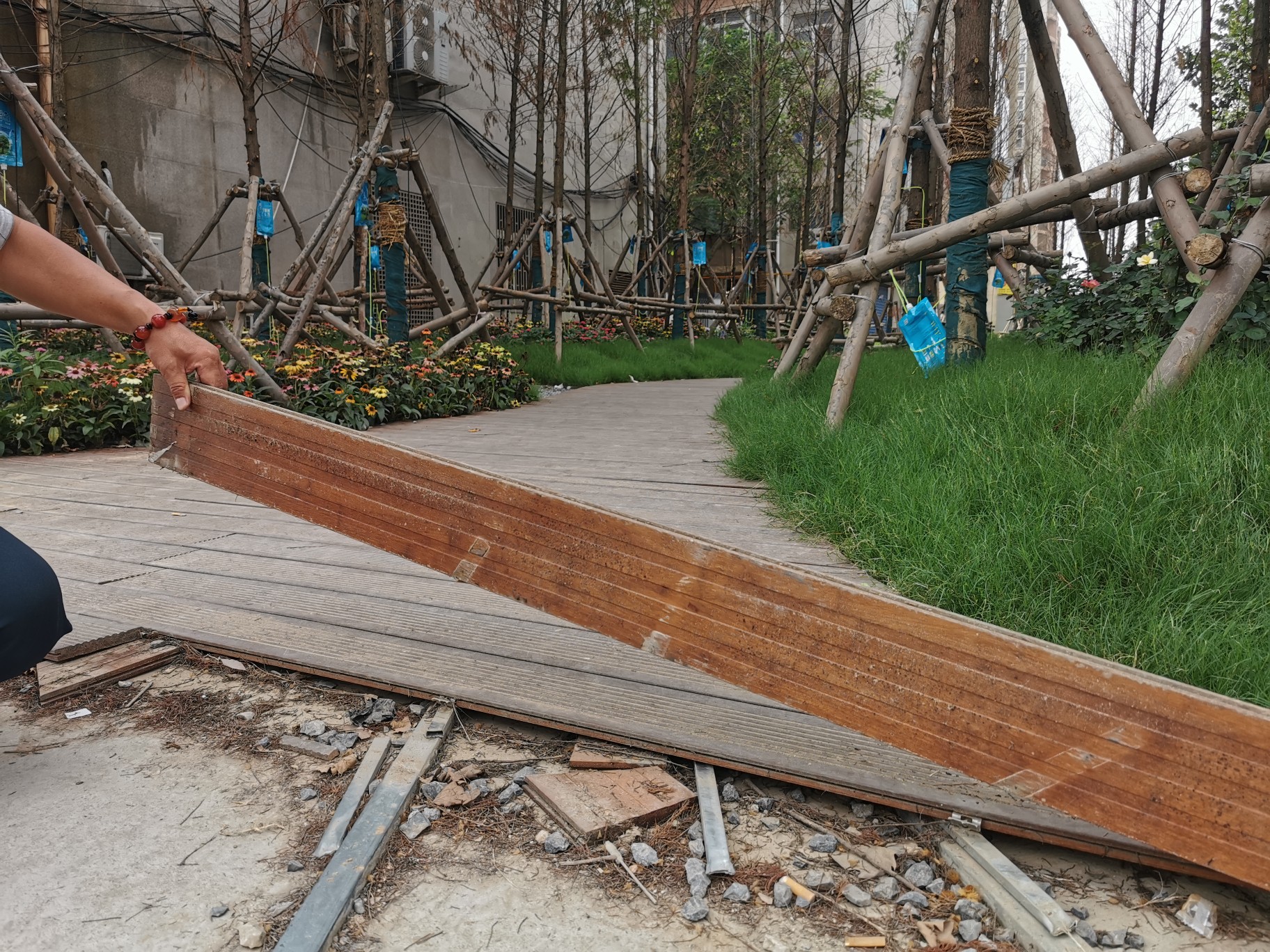 熊经理介绍称,他们只是根据施工要求进行作业,对于居民的建议和想法,已经超出了职责范围。他们应当去绿化部门进行反应。他表示,接下来,将加强管养助力苗木成活,并对损坏的木质栈道,进行修复。