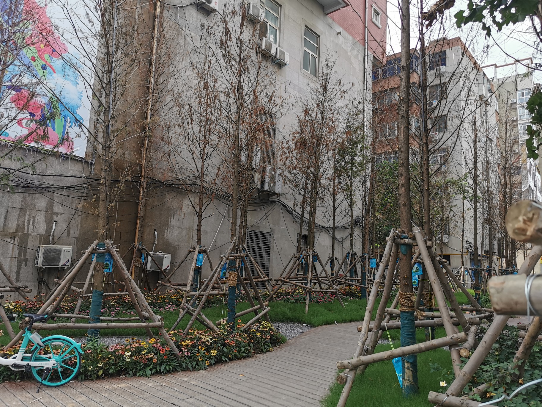 闹市街头植下一片绿 一个月后显得有些“秃”