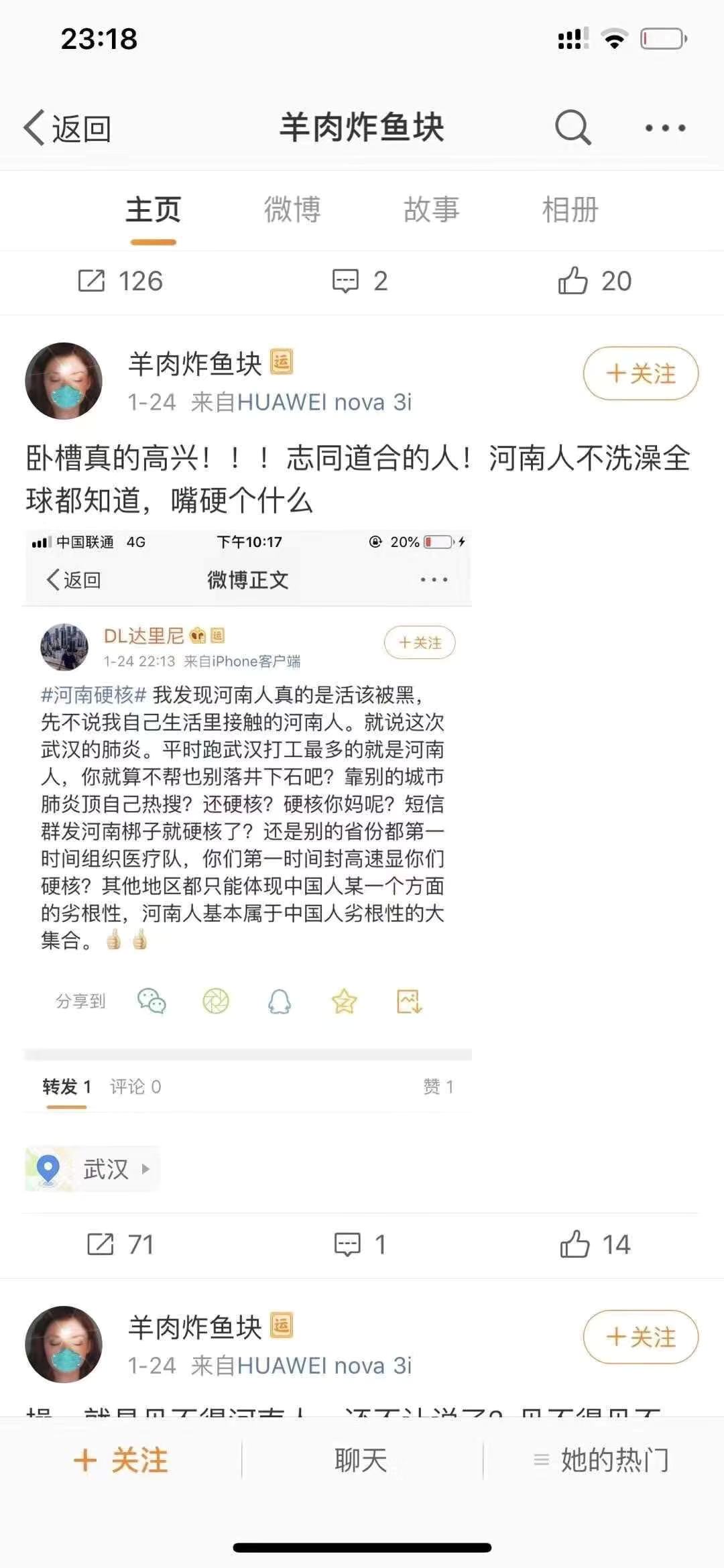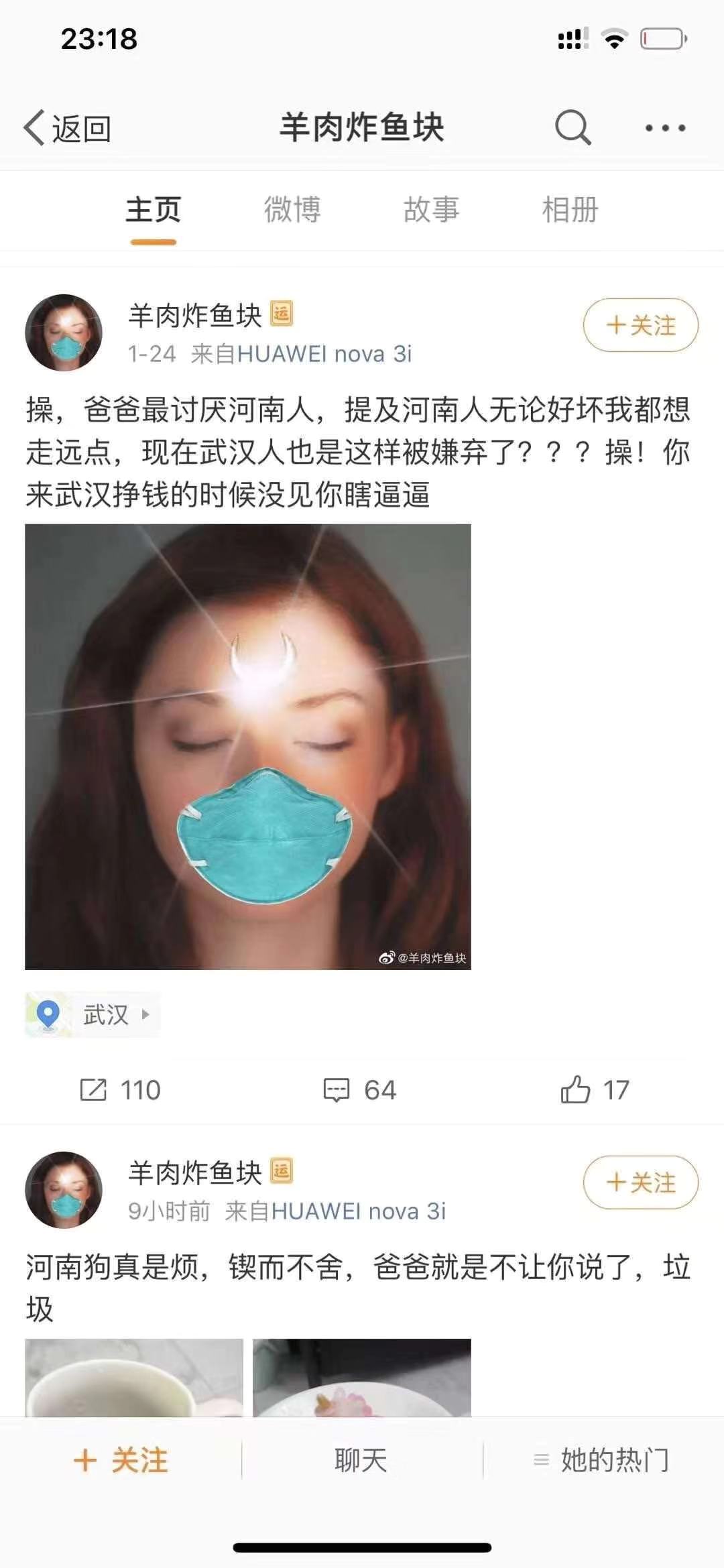 疑似武汉女网友恶语攻击河南,网友呼吁查处!