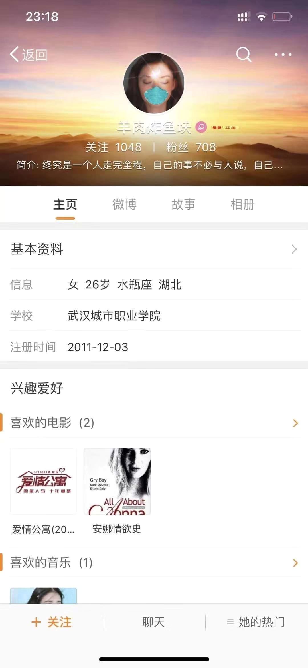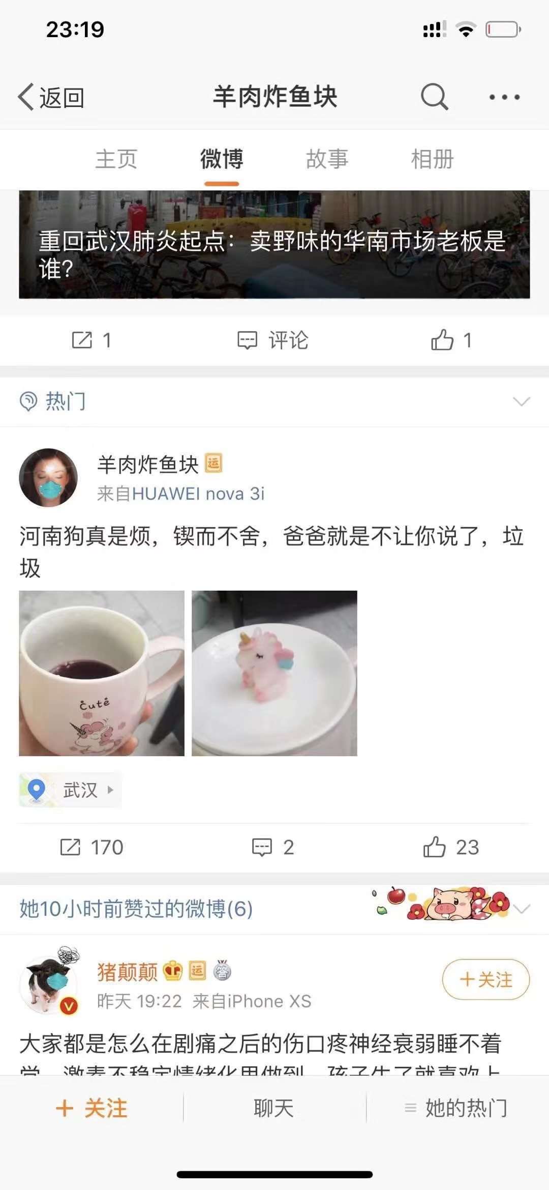▲女网友“羊肉炸鱼块”微博资料