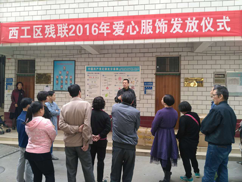 图为:西工区残联2016年爱心服饰活动发放仪式现场