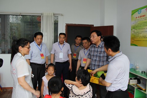 图为永城市人大常委会一行视察永城市残联康复中心儿童