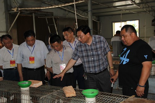 图为永城市人大一行查看扶贫基地养殖情况