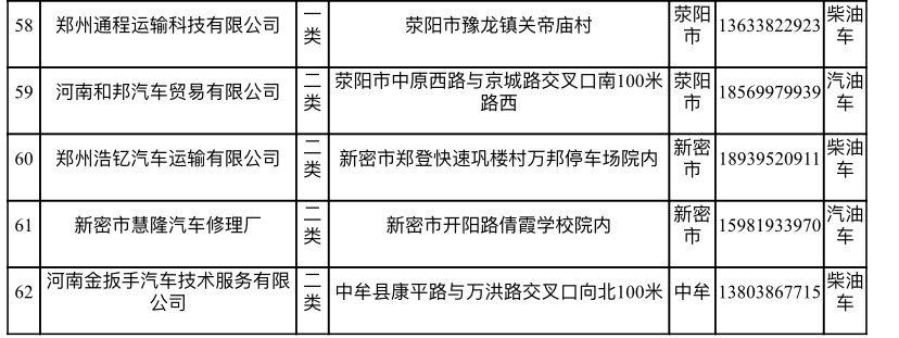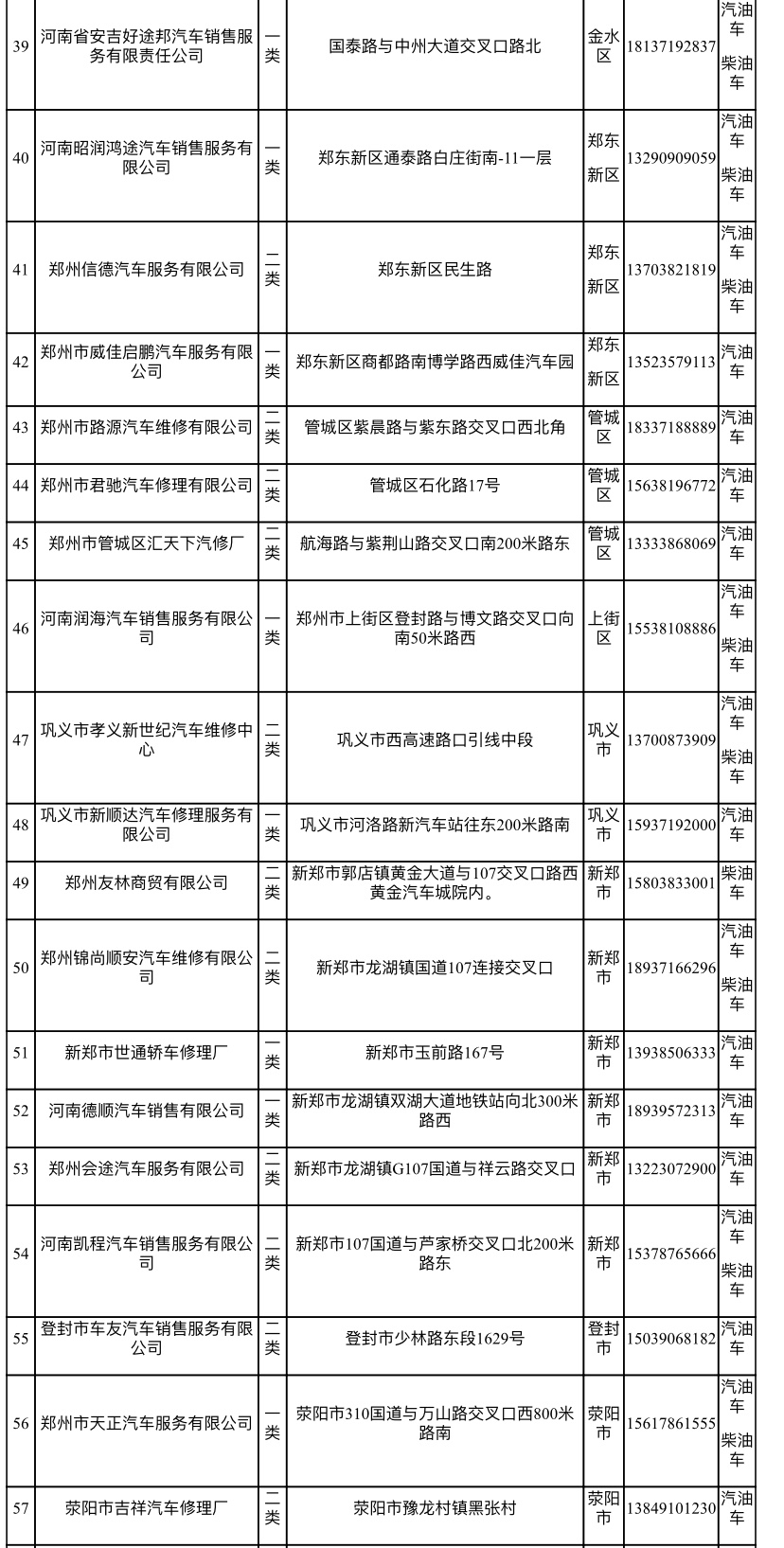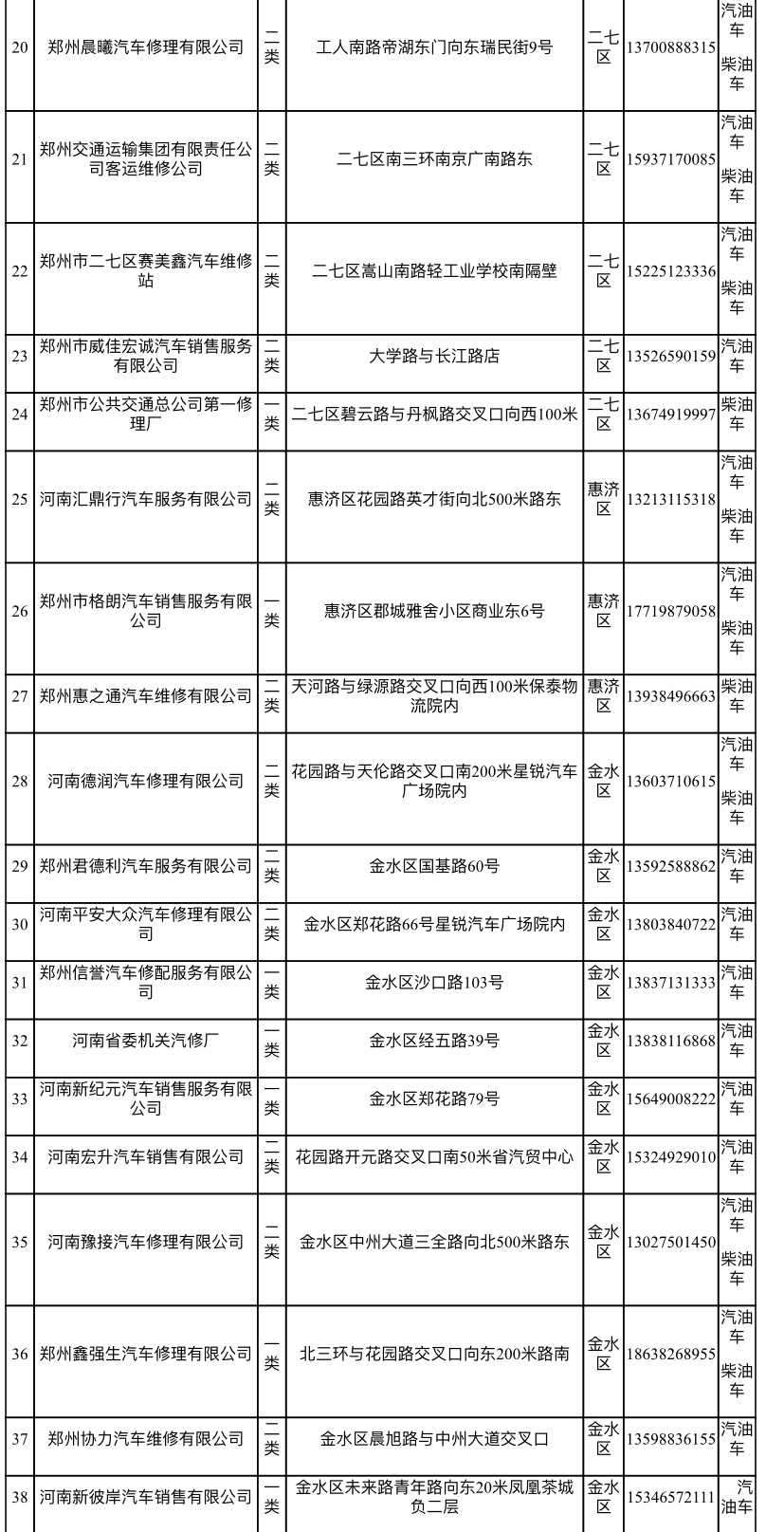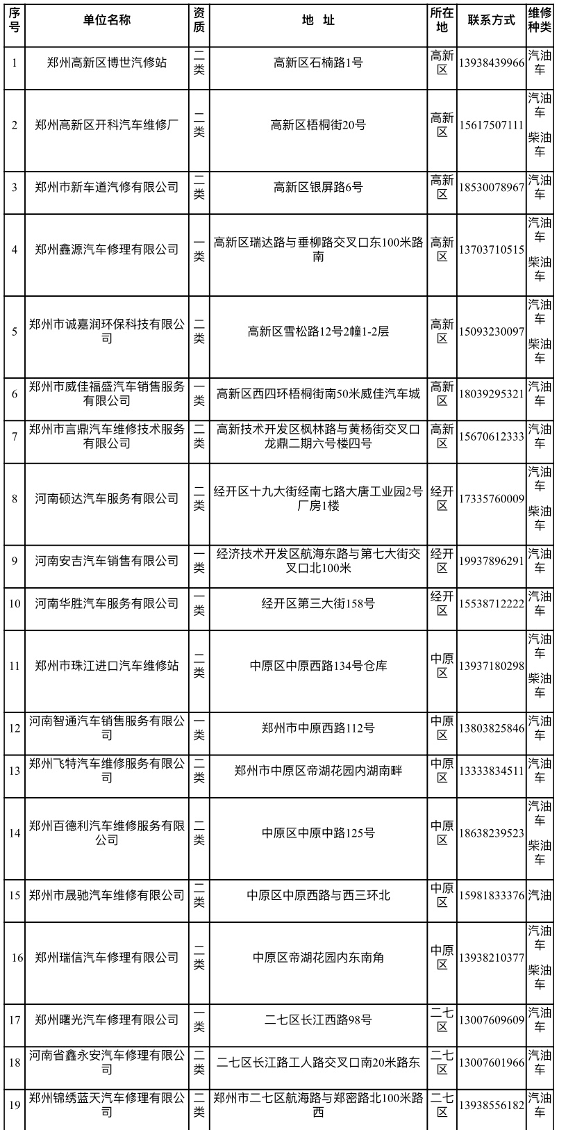 附:郑州市机动车尾气超标维修治理(M)站名单(第一批)