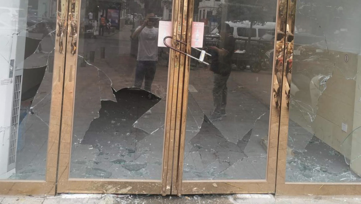 气愤!新店还没开张,店门就被人砸得稀烂,谁干的?