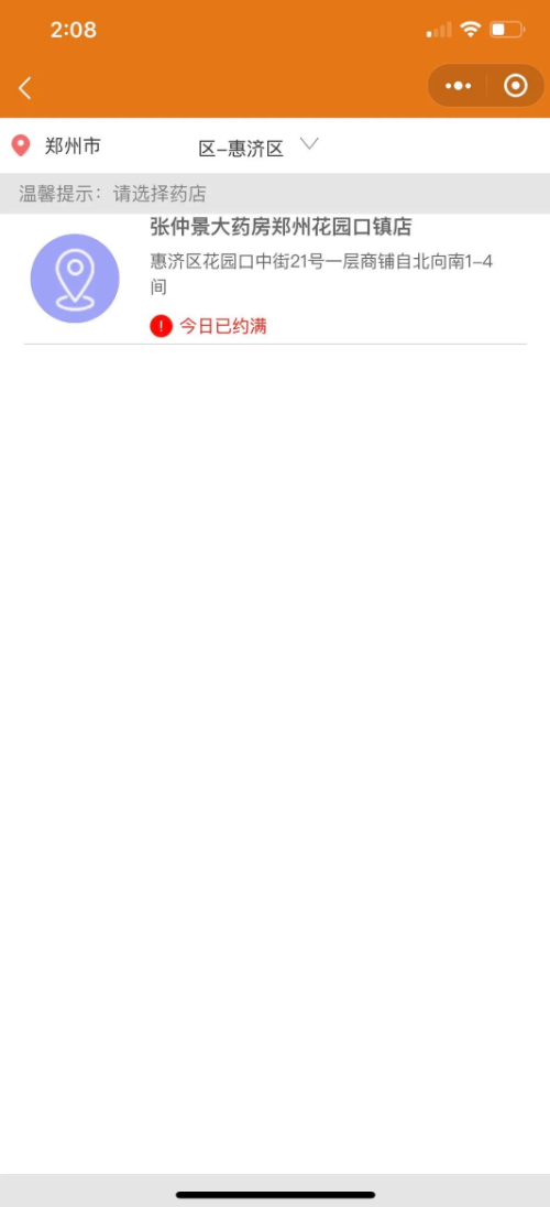 预约过程中,出现的预约药店的界面空白页,是因为预约完之后系统自动隐藏了店铺,避免大家再点没有货的店铺,所以出现空白页,如以下截图: