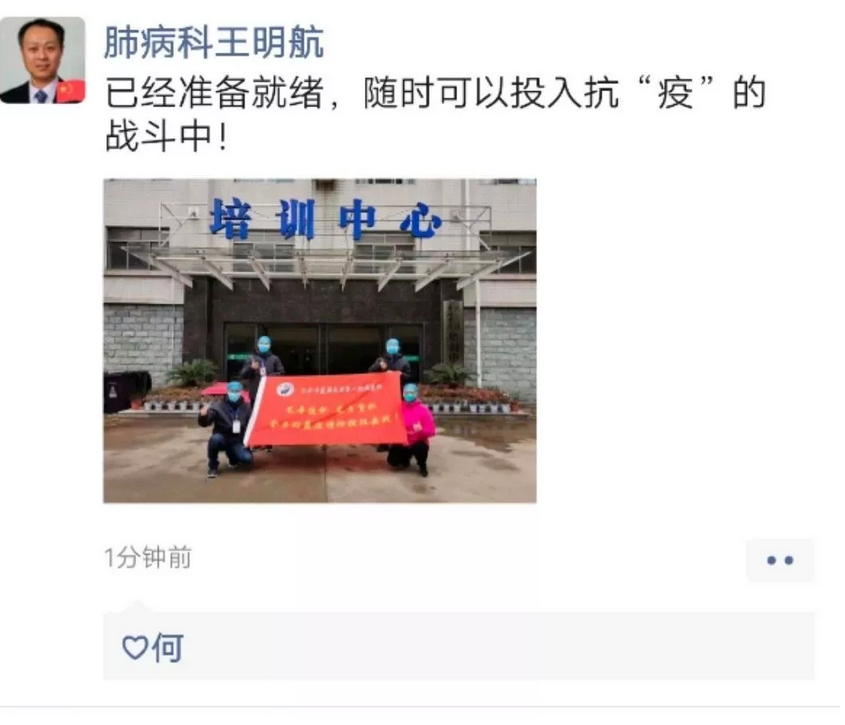 抵达现场的队员们纷纷给家里报平安,河南中医药大学第一附属医院王明航博士在朋友圈说,他们已经准备就绪,随时可以投入抗“疫”的战斗中!