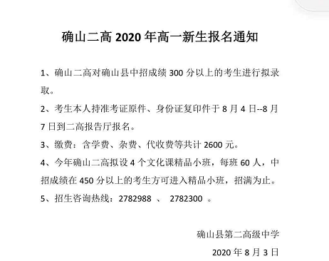 2.栾川县民办朝阳中学:按照河南省民办高中学校招生政策,面向洛阳市内县外招生160人。面向栾川县招生220人,录取分数线449分。