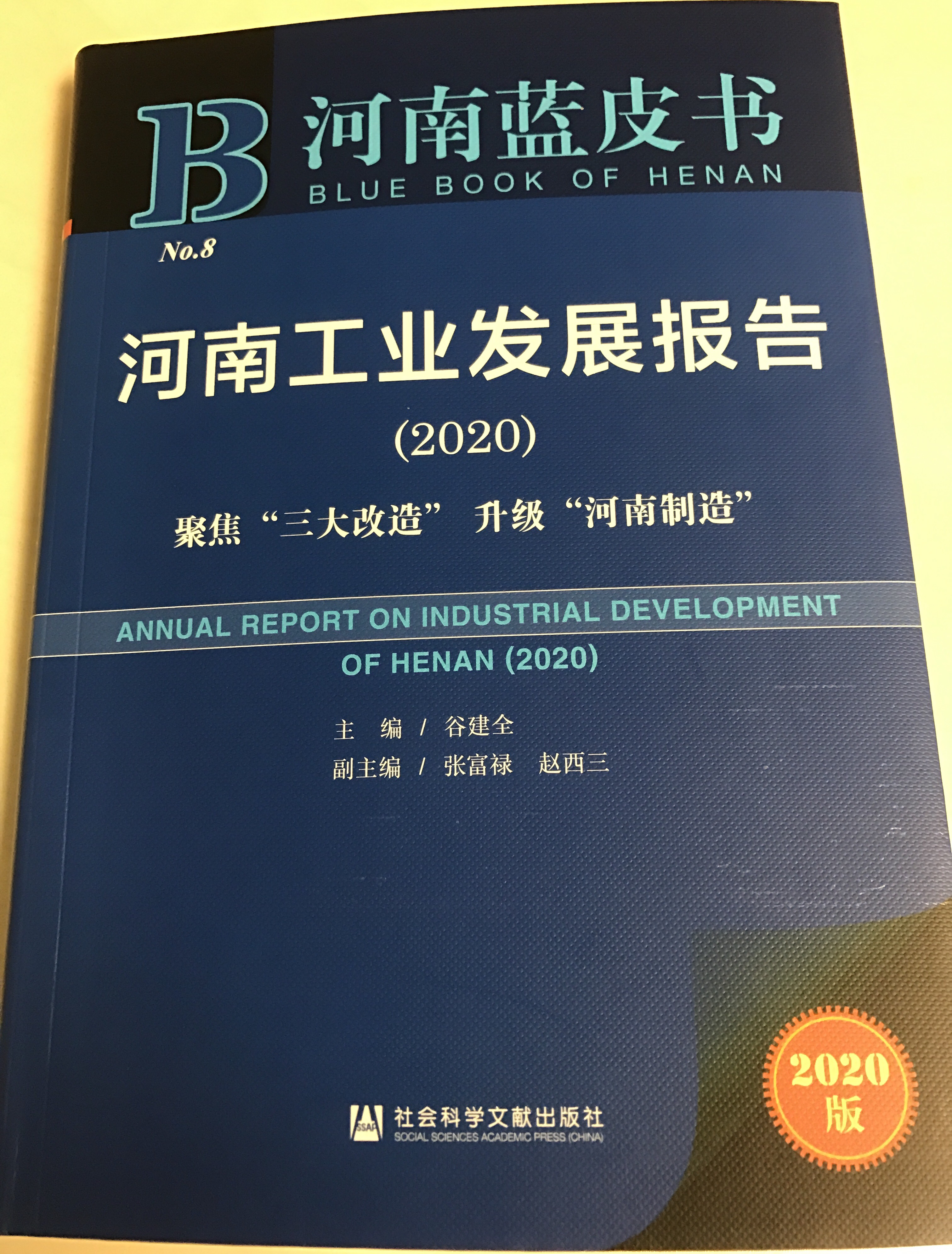 1月14日下午,由河南省社会科学院组织召开的《河南工业发展报告(2020)》(下文简称《报告》)出版暨智能制造研讨会在郑州举行。《报告》以“聚焦‘三大改造’升级‘河南制造’”为主题,全面分析了2019年河南工业经济运行的总体态势和主要特点,对2020年河南工业经济发展趋势进行了展望。在评价篇《河南区域工业经济高质量发展评价报告》中,围绕创新、协调、绿色、开放和共享等角度构建区域工业经济高质量发展评价指标体系,对河南18个市工业发展质量进行综合评价,结果显示,郑州、许昌、洛阳,位列河南区域工业经济高质量发展综合排名前三甲。