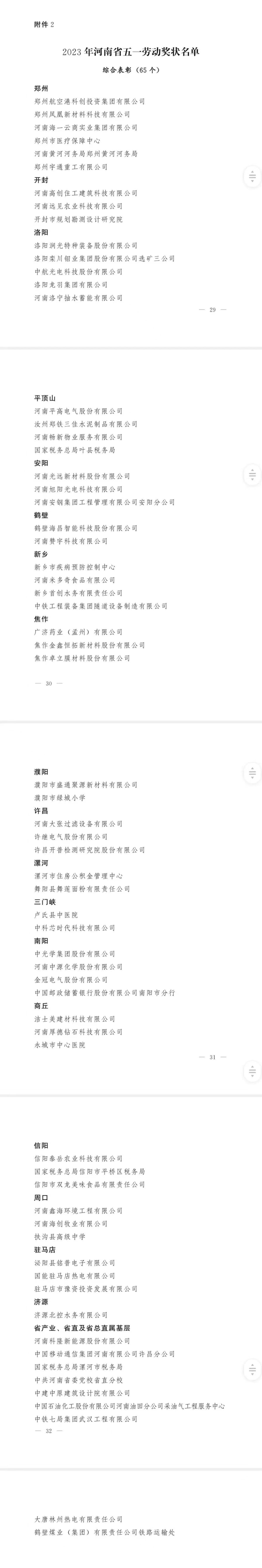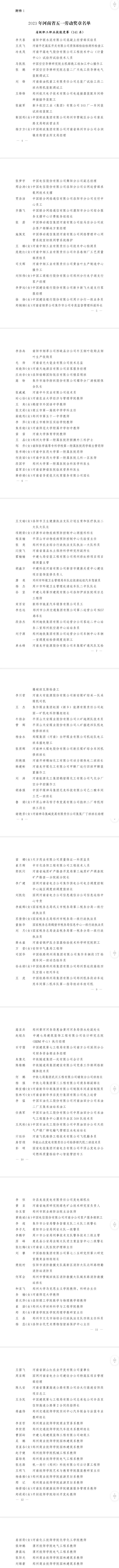 “五一”国际劳动节将至,河南省总工会日前印发了《关于表彰2023年河南省五一劳动奖章、河南省五一劳动奖状和河南省工人先锋号的决定》(以下简称《决定》),341名先进个人、65家单位和142个集体受到表彰(名单附后)。