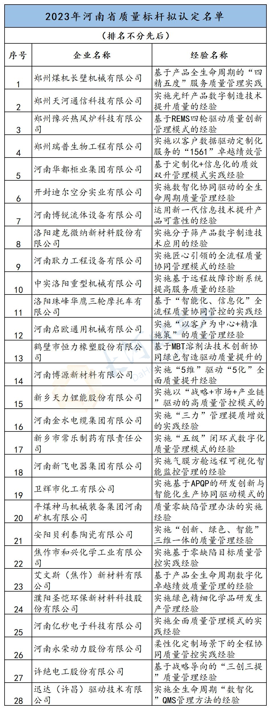 2023年河南省质量标杆拟认定名单公示,建龙微纳、天力锂能等在列