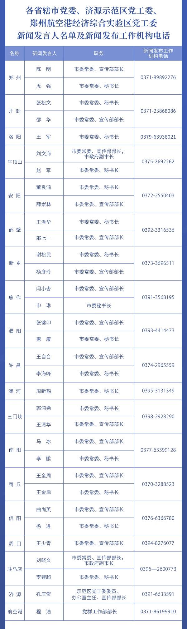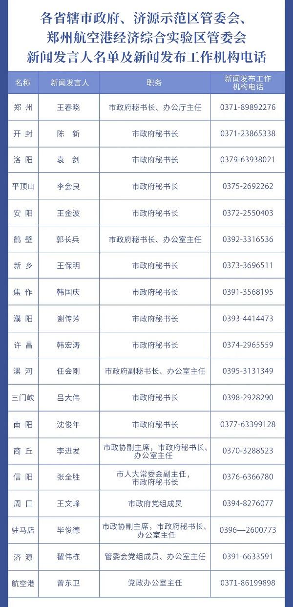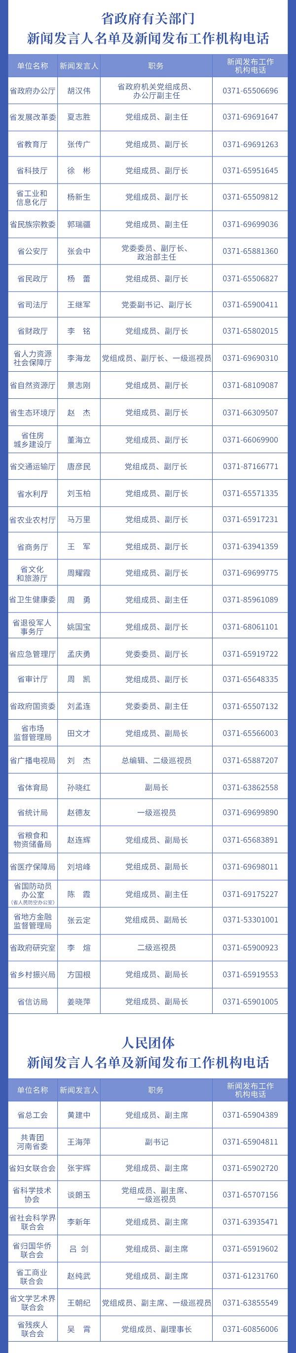 为进一步推动党务政务信息公开,积极回应社会关切,保障和维护人民群众的知情权、参与权、表达权和监督权,6月12日,中共河南省委宣传部、河南省人民政府新闻办公室公布河南省新闻发言人名单及新闻发布工作机构电话。