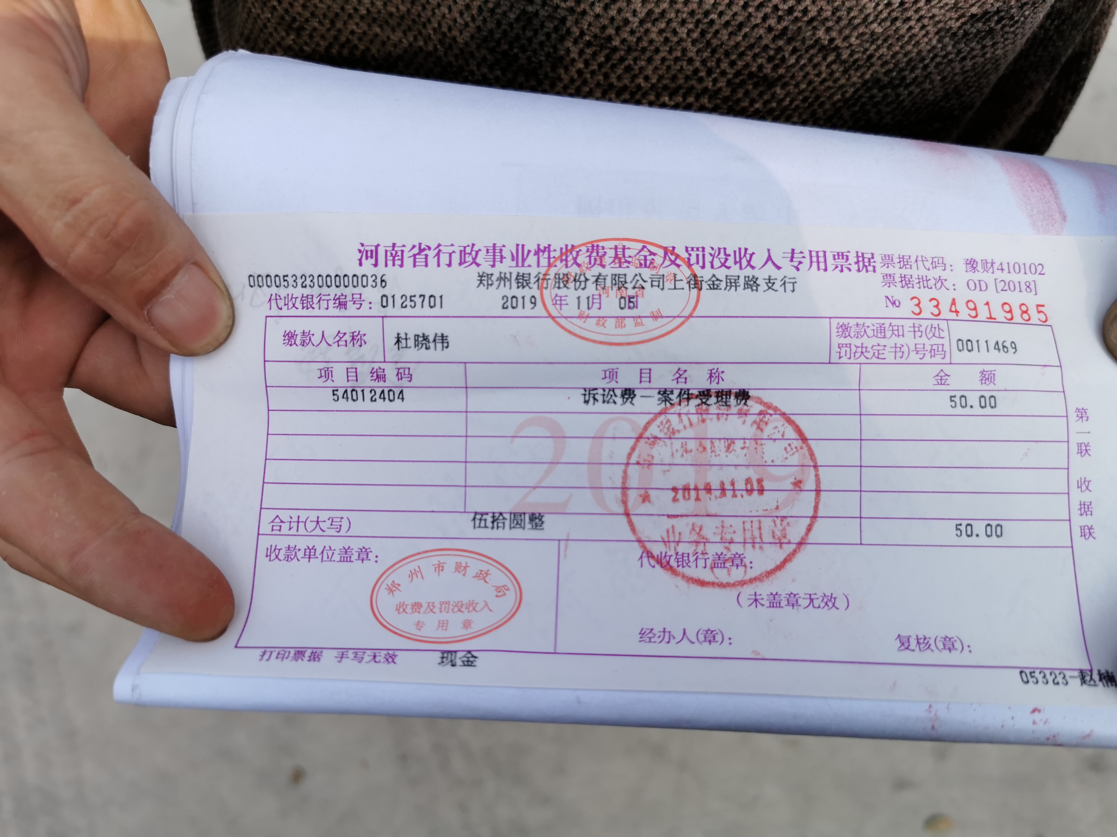 “一审判决败诉,我心里不服。”杜晓伟称,11月5日,在法律规定上诉期限内,他通过上街区人民法院提交了上诉状。