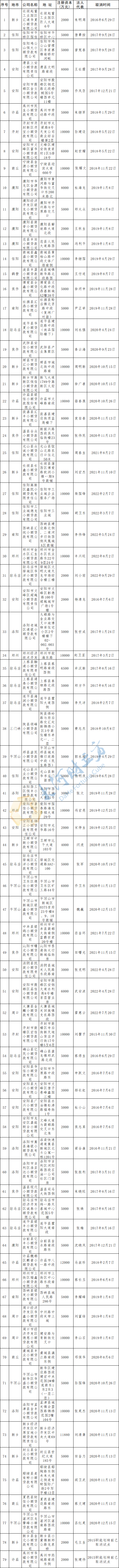 河南79家小贷公司已退出试点,但未注销登记或办理名称经营范围变更 | 名单