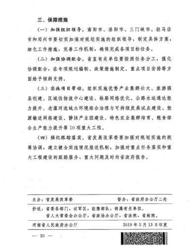 同样,《汉江方案》中,方案明确提出要建成郑万高铁、蒙西至华中煤运通道河南段,争取国家尽快组织实施呼南高铁豫西通道,规划研究宁西高铁、南阳至驻马店至阜阳铁路。加快建设方城至唐河至湖北枣阳、周口至南阳、尧山至栾川至西峡等高速公路。实施唐河社旗至省界航运开发工程,建成南阳港唐河、新野、社旗等港区。提升南阳机场运送能力,支持有条件的县(市)规划建设通用机场。