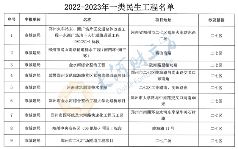 部分项目名单附:关于印发郑州市2022-2023年民生工程名单的通知