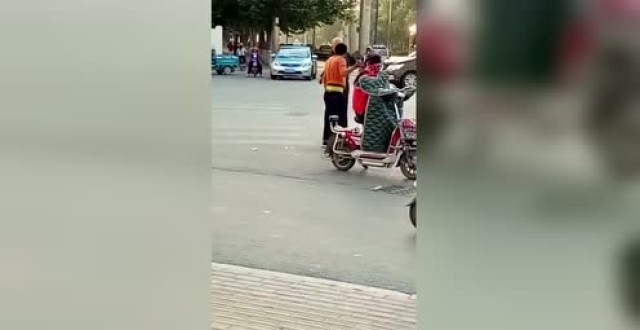 差点被撞的老人与面包车司机理论,电动车被摔在一旁