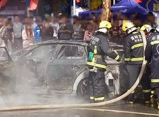 濮阳私家车烧成铁架子 把前后两辆车都烧着了