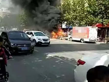 2016年10月1日上午11点多,濮阳大庆路与任丘路交叉口西50米,一辆白色私家车在路边停着,突然燃烧起来,现场火势较大、浓烟滚滚,连它前后的两辆车都被烧坏了。119及时赶到,将火扑灭,幸好无人员伤亡。着火原因有待相关部门进一步调查!