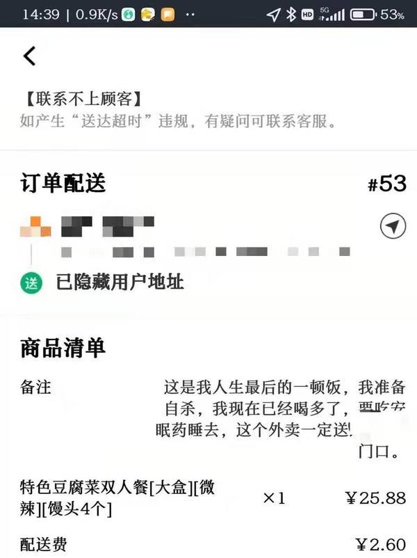 “这是我人生最后一顿饭……”一条外卖订单备注,道出了郑州市某男子最后的“崩溃”。