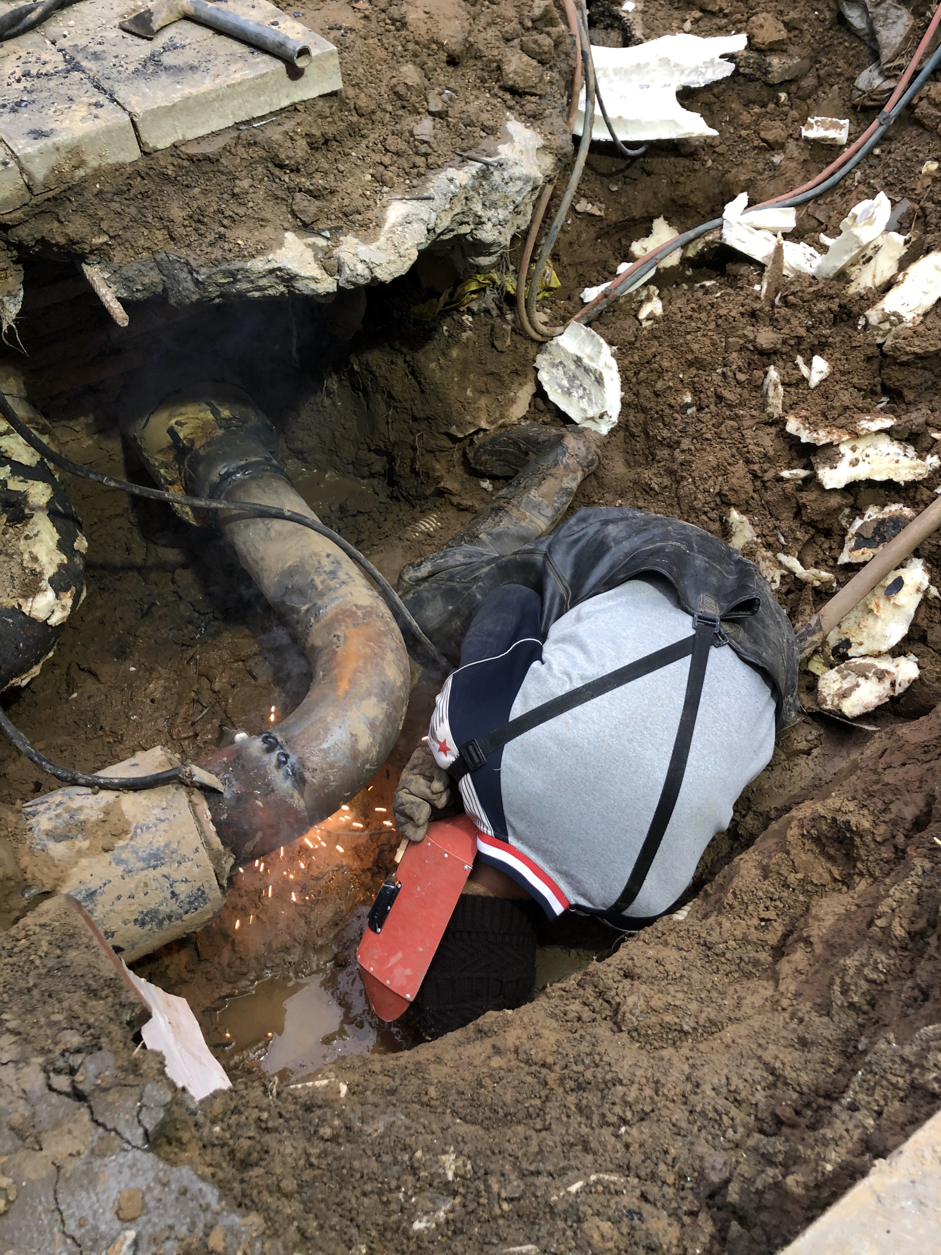 夜晚11时55分,管道停止冒水后,大家看到爆管处的地面,被冲出一个约5平方米的大坑,坑深近两米。抢修人员随后调来挖掘机,将爆管处挖开,开始连夜抢修。