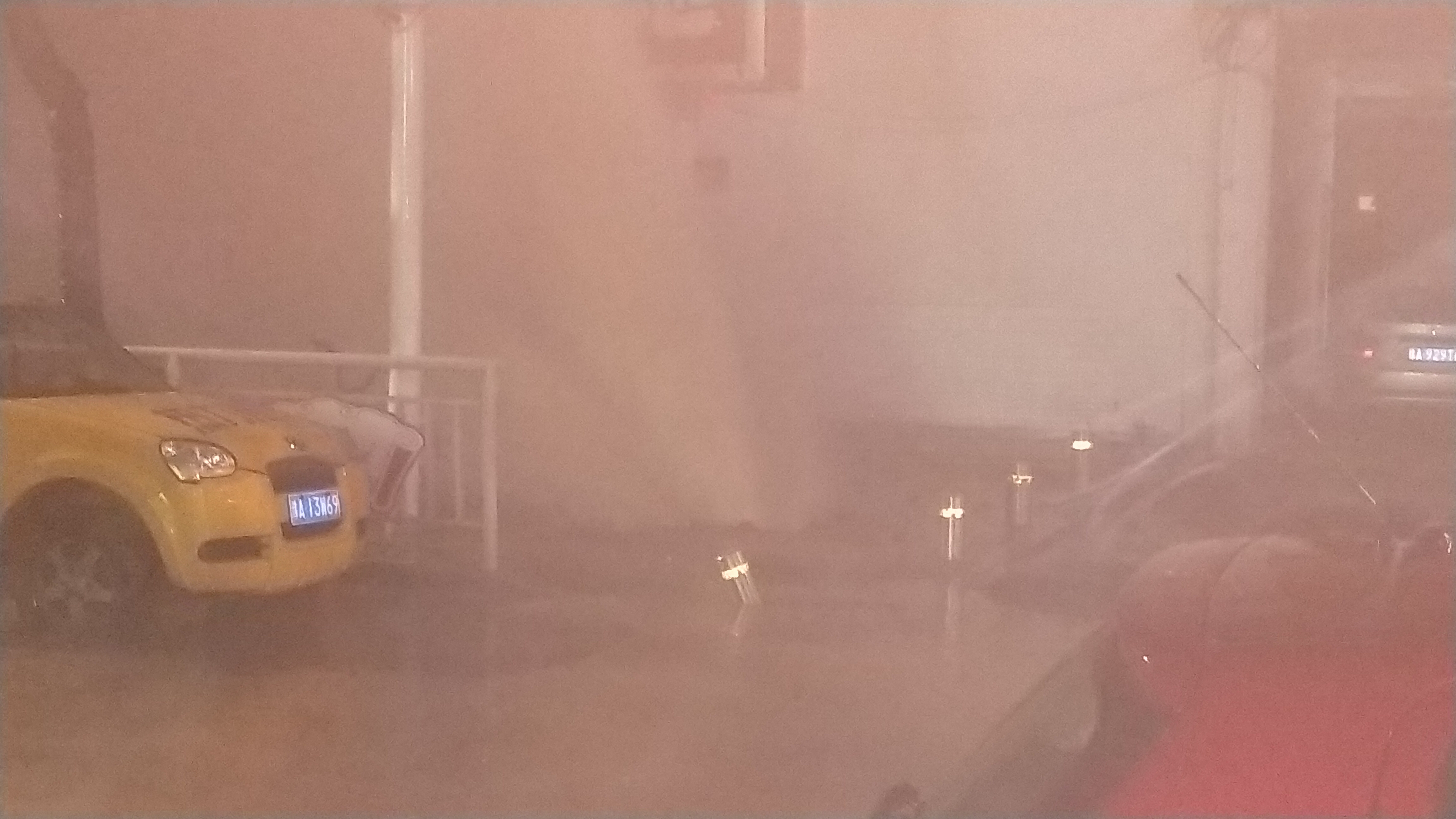 郑州街头热力管道夜间爆裂 十几米高的水柱直冲居民楼上