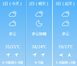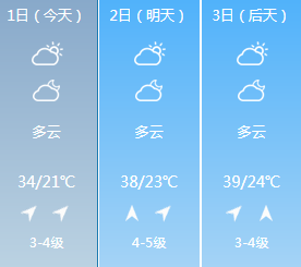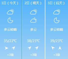 今天省内北部多云,其它地区晴天间多云。6月2日全省晴天到多云,北中部部分地区将出现35度以上的高温天气,局部可达37到39度。