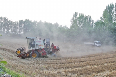 记 忆中的上世纪七八十年代,每到6月时,金黄的麦浪翻滚着,热辣辣的空气中净是麦香,父亲们的汗水顺着脸上刀刻般的皱纹滴落,立即消失在干旱的黑土地上,但 他们却干劲十足,双手在田间地头上下翻飞,收割着成果,收割着希望,收割着全家人一年的口粮和经济来源。割麦、晒麦、脱壳、扬麦……一年的收获就在这几 天,要跟“老天”抢时间,但一道道工序不能乱,不分白天黑夜地干,渐渐的,一个个麦秸垛高高地在打麦场上堆起来了,金黄的麦粒如同跳跃的音符,齐刷刷地流 进编织袋。