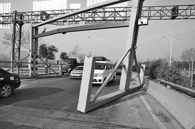 郑州北三环两处限高杆被撞 损失超30万肇事车逃逸