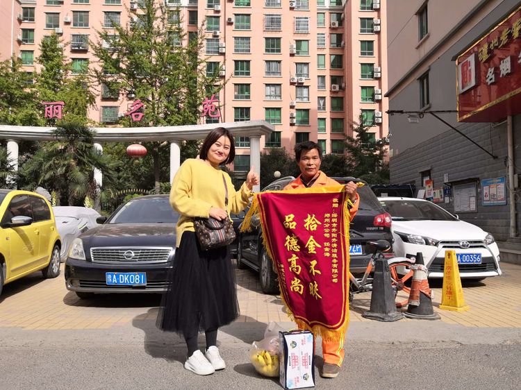 10月28日上午,失主孙女士接到民警通知说包找到了,就专程来到深圳市升阳升清洁服务公司郑州分公司,将一面“拾金不昧 品德高尚”字样的锦旗和牛奶等礼品送到环卫工人任金海手中,以表达感激之情。找回了失而复得的钱包,失主孙女士脸上的喜悦之情溢于言表:“真的太谢谢你们了,当发现钱包丢了以后,十分着急,没想到还能找回来,特别感谢这位环卫工师傅,他真是个好人,愿好人都有好报。”随后,环卫工人任金海将身份证、十几张银行卡,1700元现金等贵重物品交给失主。