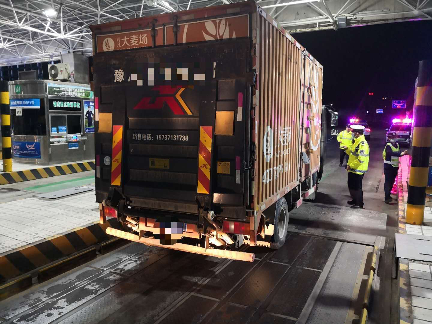 当晚10时30分许,高速交警一支队民警吕厚敬、侯长胜对一辆车厢上喷有“非凡大麦场”字样的豫A号牌轻型厢式货车进行例行检查。