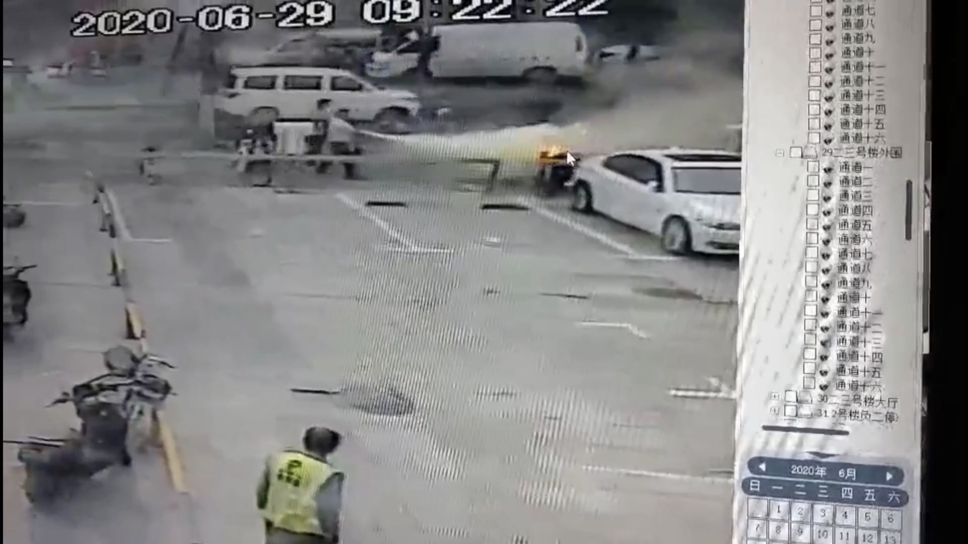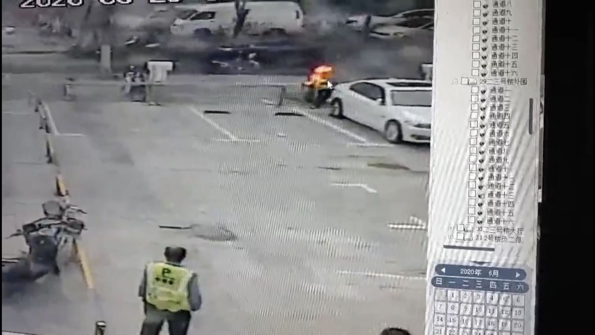 据现场的物业保安说,该辆电动车的车主是一名跑外卖的年轻小伙子,起火前正在充电桩上充电,起火原因可能跟该电动车的改装有关,车主也赶到现场进行查看。