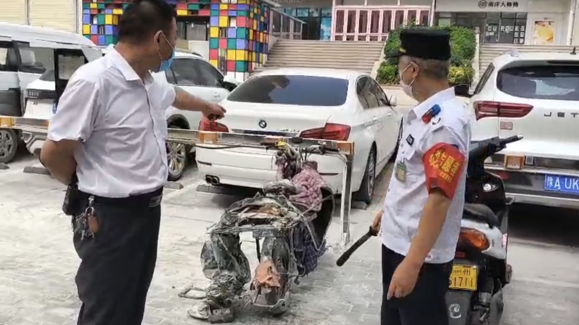 在热心人的共同努力下,很快将火扑灭,只是电动车后半部分被大火烧毁严重。接着,小区物业保安及时拨打了110报警求援。