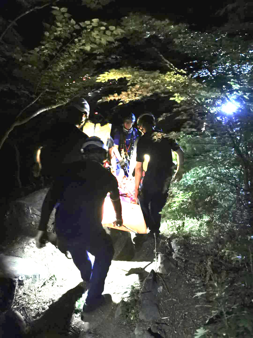 下午3时43分,在山下前指的指挥长王海滨从电台里得到消息,前方一队搜救人员在距野路50米处的一条隐秘峡谷的绝壁下,发现了一名坠崖男子,其衣貌特征与失踪人员高度吻合。各路救援人员迅速朝事发地点赶去。由于山势险峻,救援人员系上安全带,小心翼翼地下到峡谷的绝壁下。此时,天已经黑了。大家找到坠崖男子身边时,发现他已经没有了生命体征。