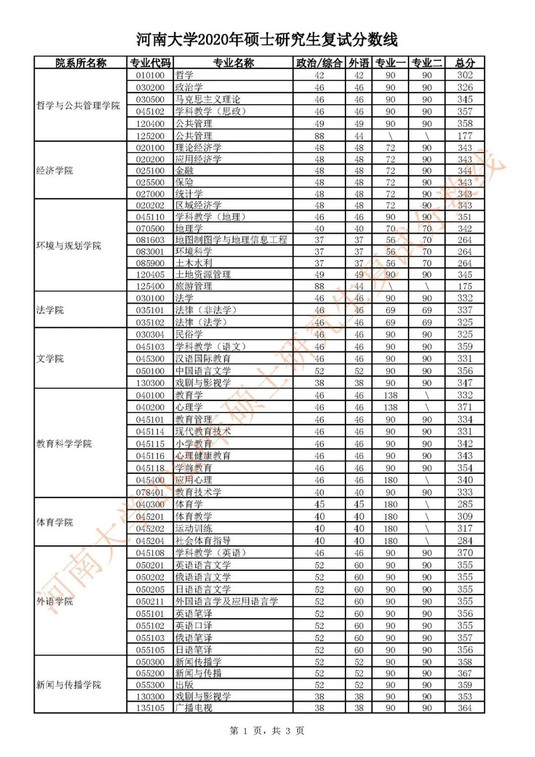 4月25日,河南大学发布2020研招复试分数线。据悉,该校依据“2020年全国硕士研究生招生考试考生进入复试的初试成绩基本要求”和河南大学设定的学科门类统考科目单科最低要求,结合招生单位生源和计划等情况,划定各学科专业复试分数线。
