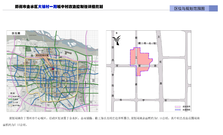 此次规划用地面积为7.15公顷(约107亩),具体用地位置为双铺路、勤工路以及村庄边界所围合的区域。