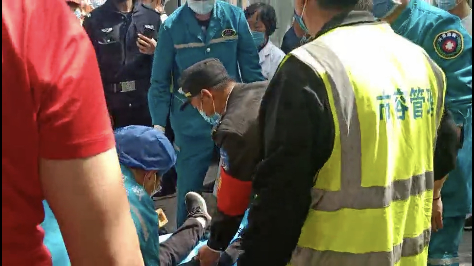 今天上午,在郑州市计划路与市场街交叉口附近,因前方路面出现塌陷,抢修人员进行封路施工。一男子驾车行至此处,不顾保安的阻拦硬要进入施工路段,结果将保安撞倒在地。