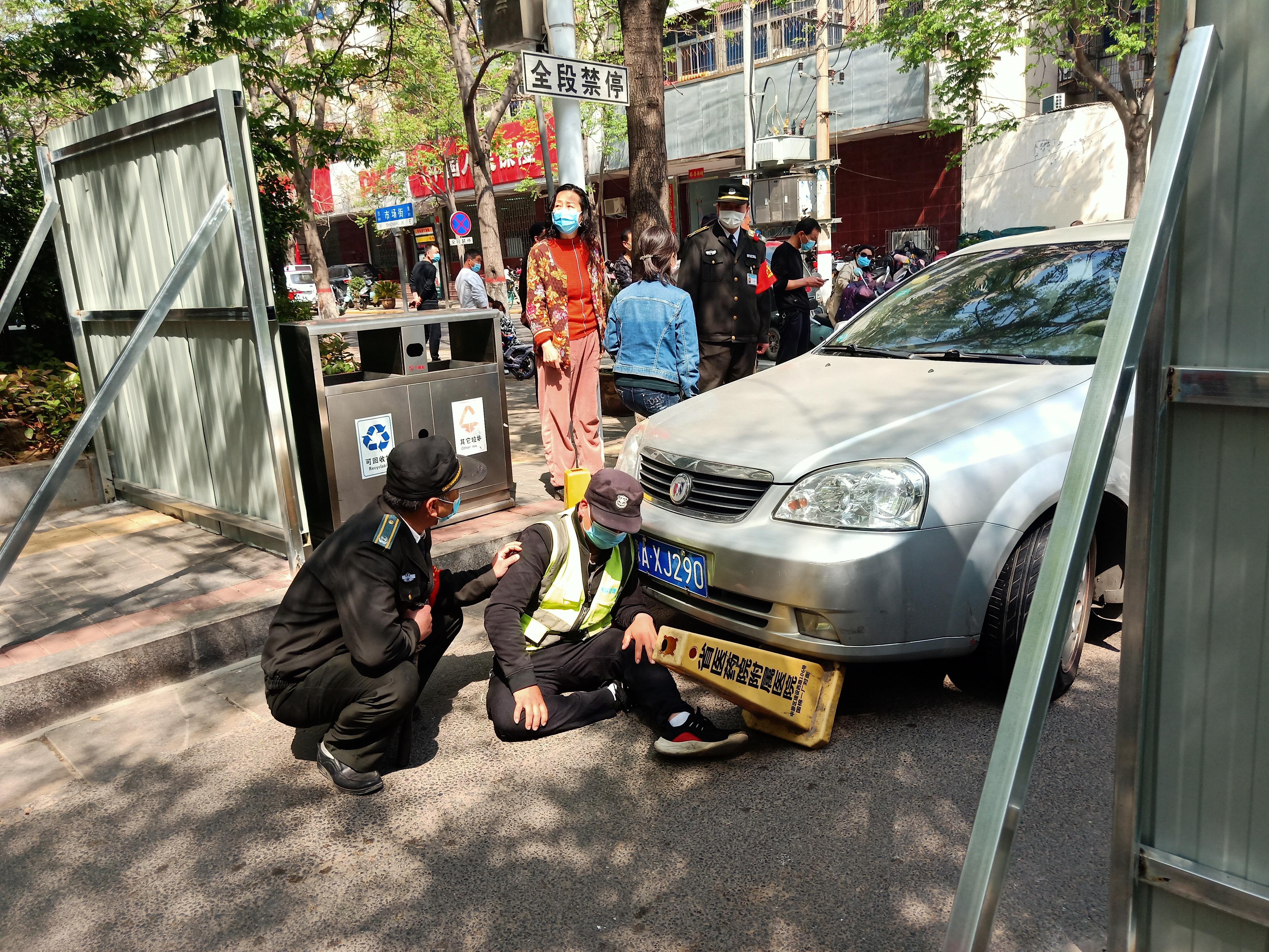前面道路施工禁止通行,轿车司机硬闯撞伤保安