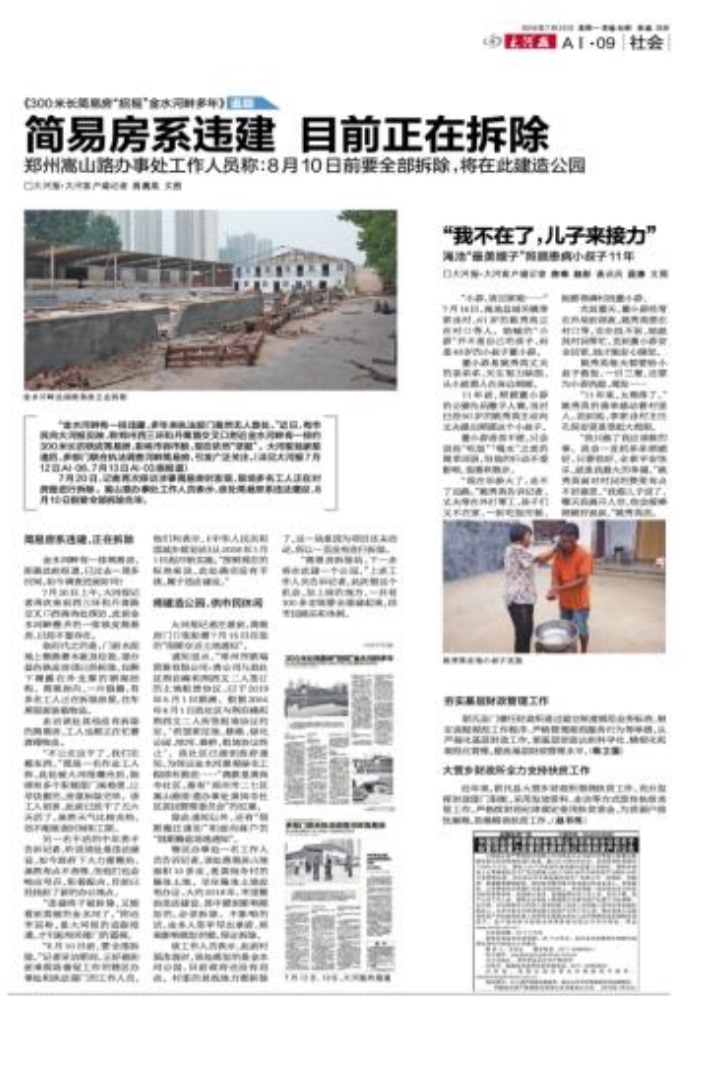 7月12日以来,大河报·大河客户端陆续报道了郑州西三环和丹青路交叉口附近,金水河畔有一排长约300米长的铁皮简易房,有市民称是违章建筑,影响市容市貌,且多年来执法部门竟然无人查处,现在依然能够“坚挺”。