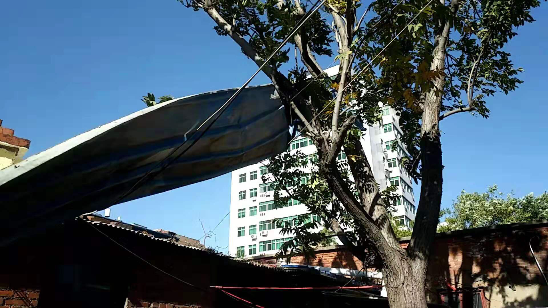 大风掀翻简易房顶部铁皮 一棵树救了一辆车