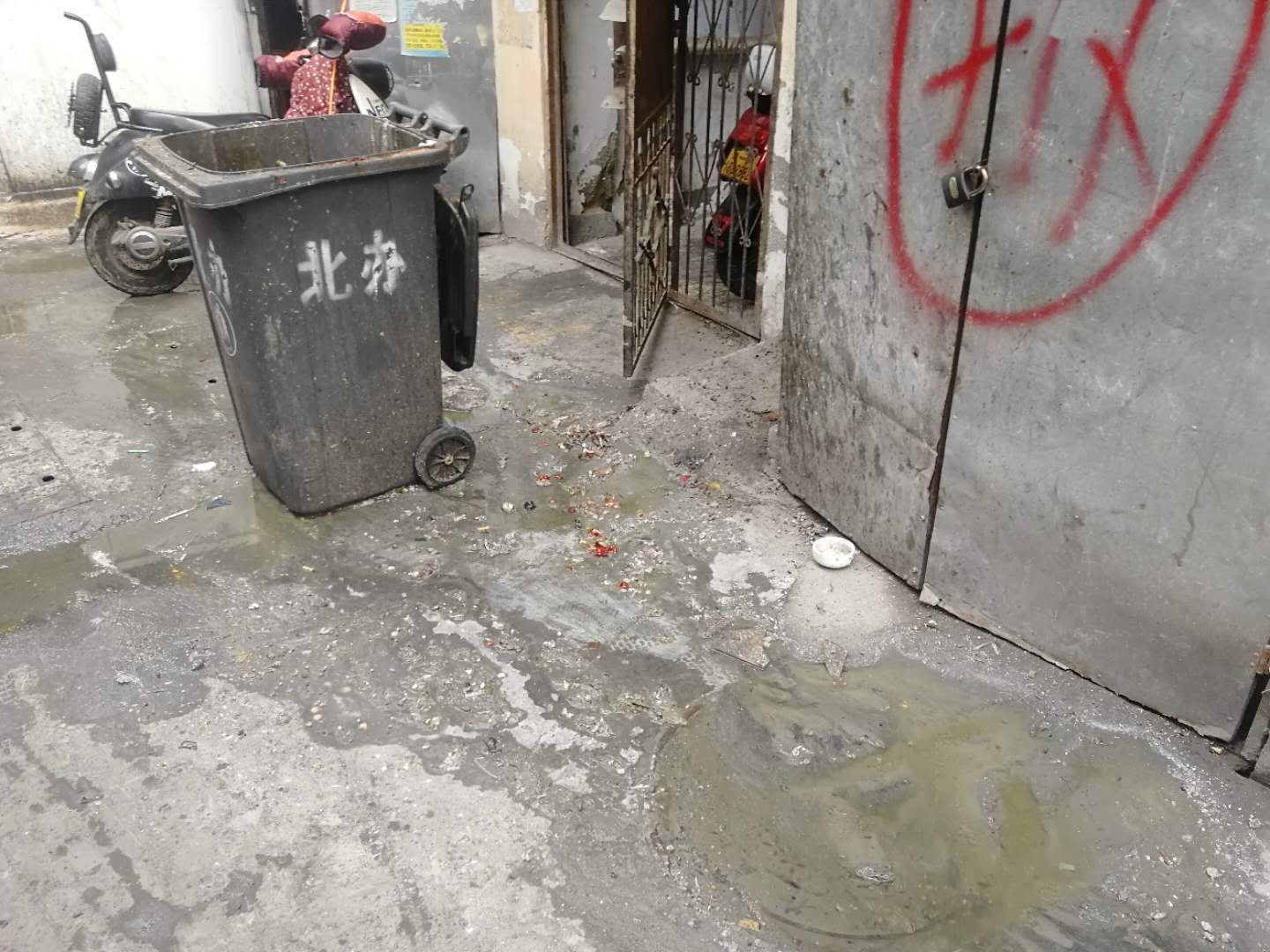 陈先生告诉记者,这些铁皮房是临街饭店私自搭建用来刷碗的地方,每天从上午9点多就开始有污水流出,一直持续到深夜。面对居民们的持续投诉,2年前,北下街街道办事处工作人员来到小区核查,将该铁皮房认定为违法建筑,并在铁皮房上喷了“拆”字,“本想着认定为违建了,可以拆除了,但没想到,一等就是快2年,现在还没拆除。”陈先生表示,这条胡同是管城街65-66号楼居民们出行的必经之路,而这些违建的搭建,让小区居民的出行十分不便。