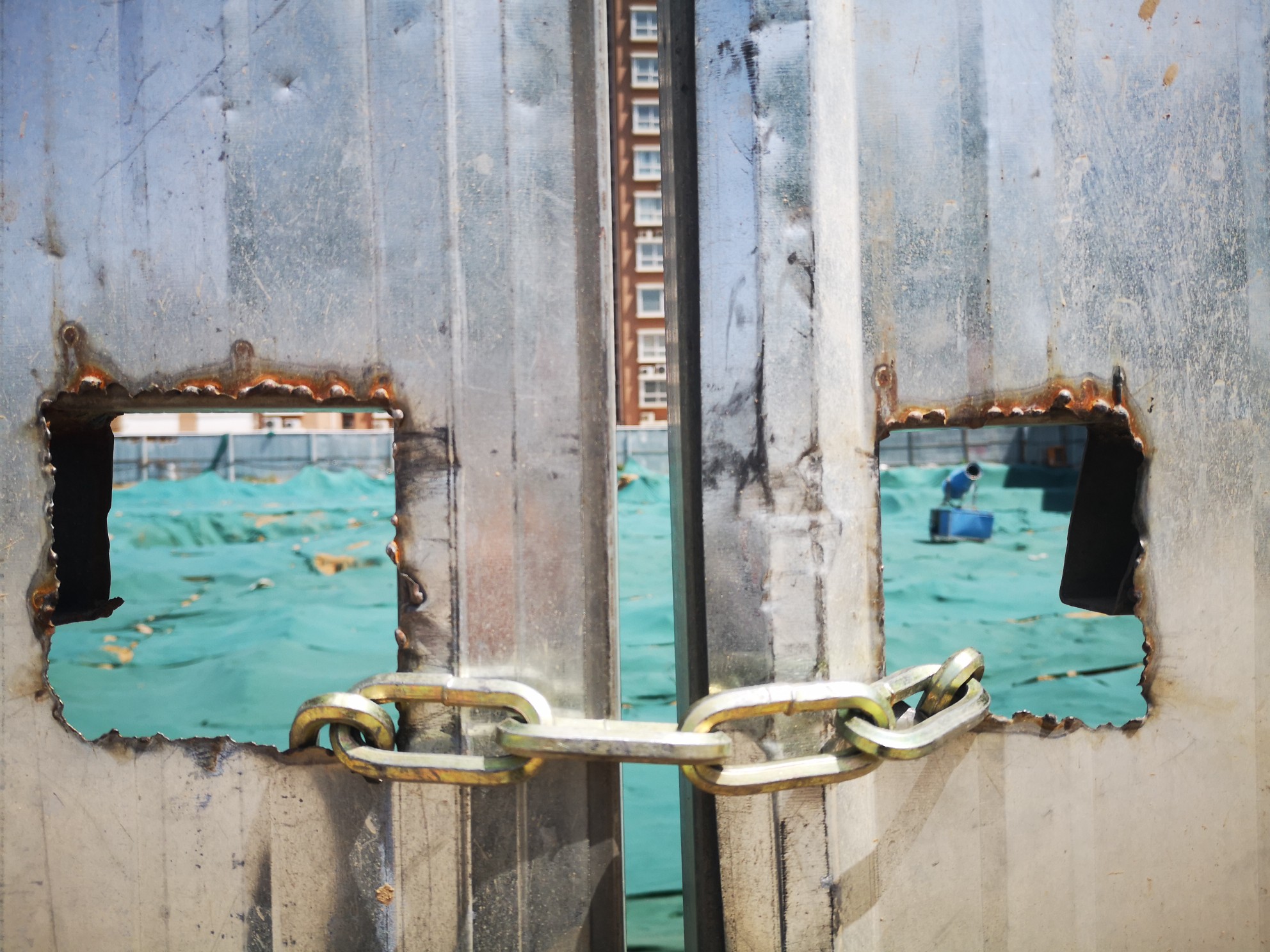 在南侧一入口处,一扇铁门敞开着,一名男子在里面值班。见记者掏出手机拍照,他迅速出来,并用铁链锁,锁上了大门。