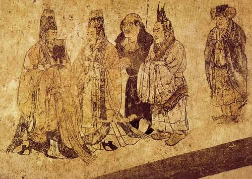 鸿胪寺,唐朝外交礼仪机构。图为唐章怀太子墓道东壁《客使图》,描绘了唐代鸿胪寺官员接待使节、来宾的情景