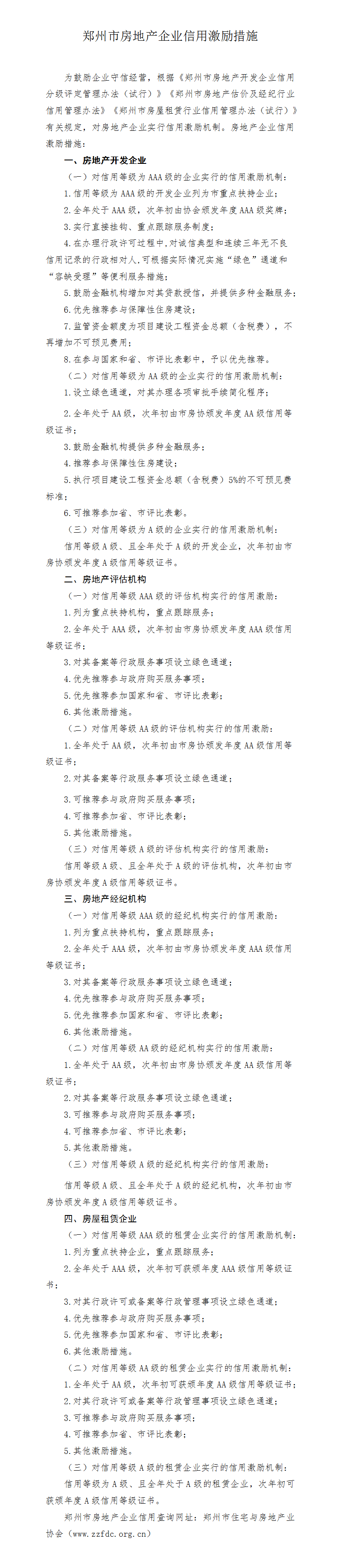 【大河财立方消息】3月29日,郑州市房协公告,对房地产企业实行信用激励措施。
