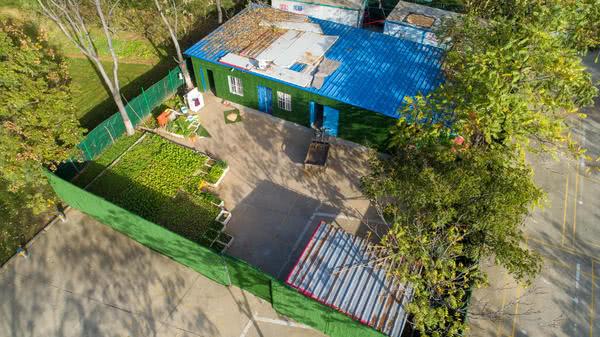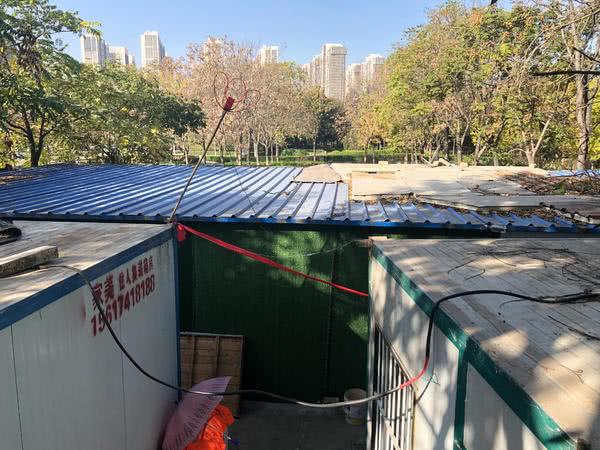 河南商报记者经过走访发现,公园被围墙分割了一个小院,院内却种起了青菜,养起来了狗,几百平米的小院被草皮围挡的水泄不通,一道围墙之隔,小院被一分为二,几间简易板房孤立在公园之中,生活用水也直接排到了草坪上,只要有人到附近,院子里的狗就叫个不停,市民不敢靠近,这块儿地却成了公园的“禁区”。特殊的围挡用地,让很多市民蒙在鼓里,这块被绿色围挡围起来的院子究竟属于谁?种菜的又是谁?