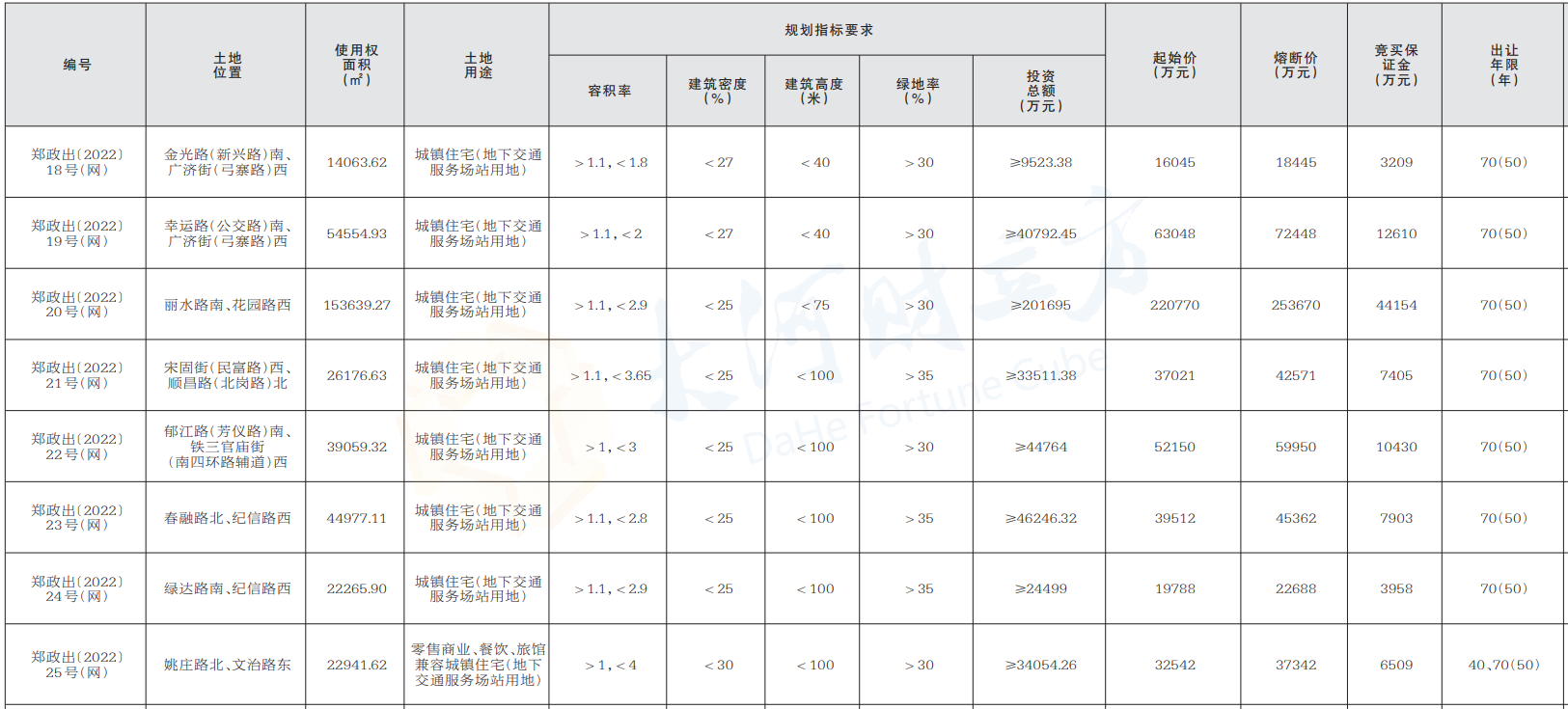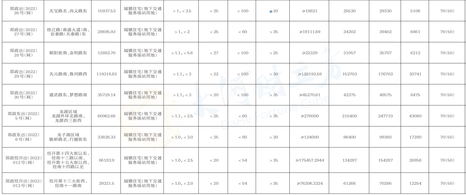 此次出让的地块涉郑东新区、经开区等区域。其中,郑政出〔2022〕20、21、28、29 号 (网)地块为城中村改造项目用地 ,郑政出 〔2022〕18、19、23、24、25、26、30 号(网)地块为合村并城改造项目用地,郑政出〔2022〕22、27 号 (网),郑政东出〔2022〕5、6 号(网),郑政经开出 〔2022〕012、013号(网)地块为政府储备用地。