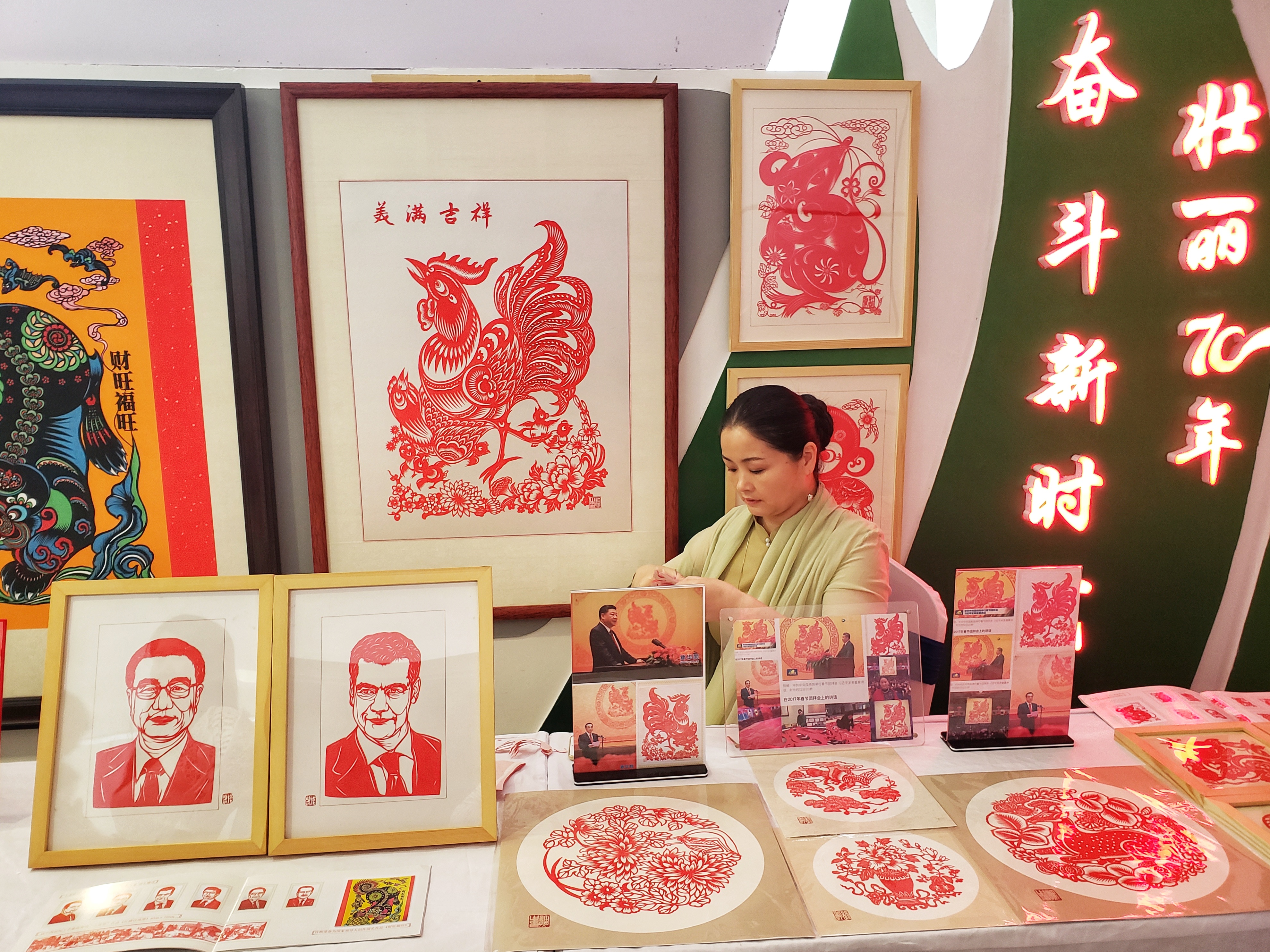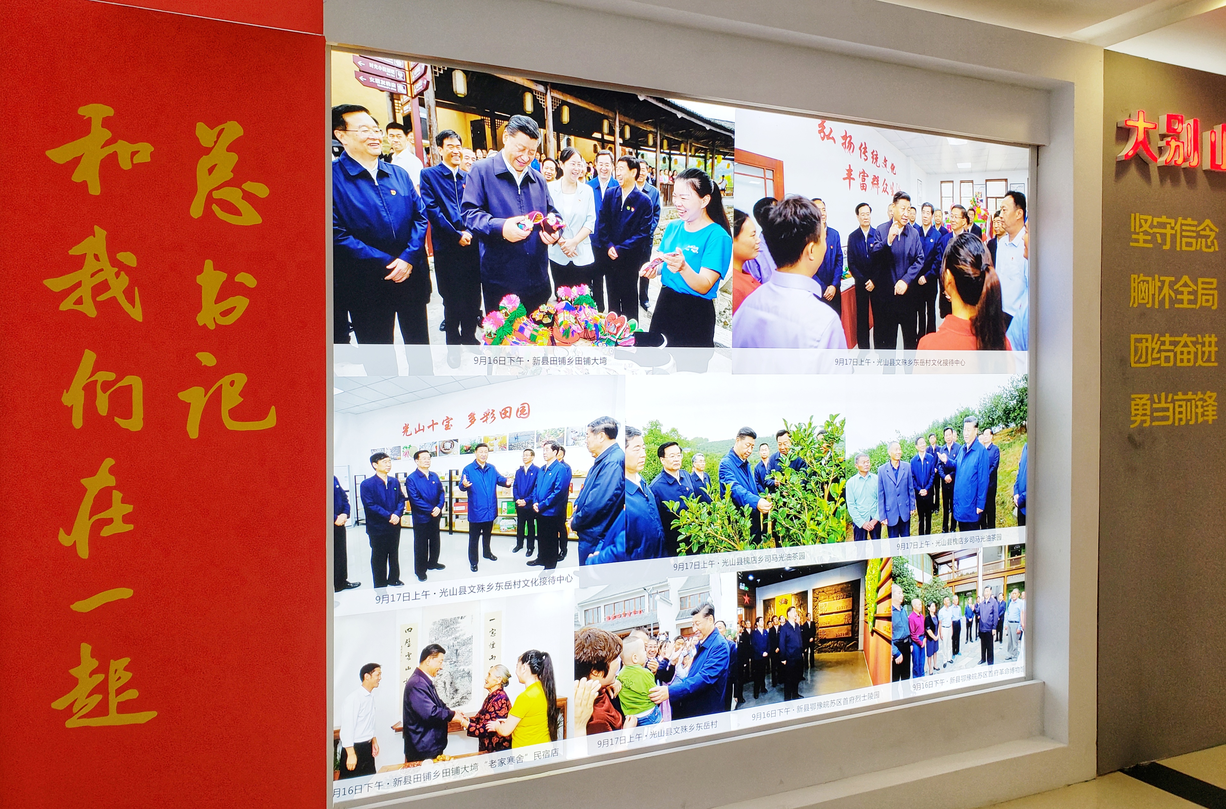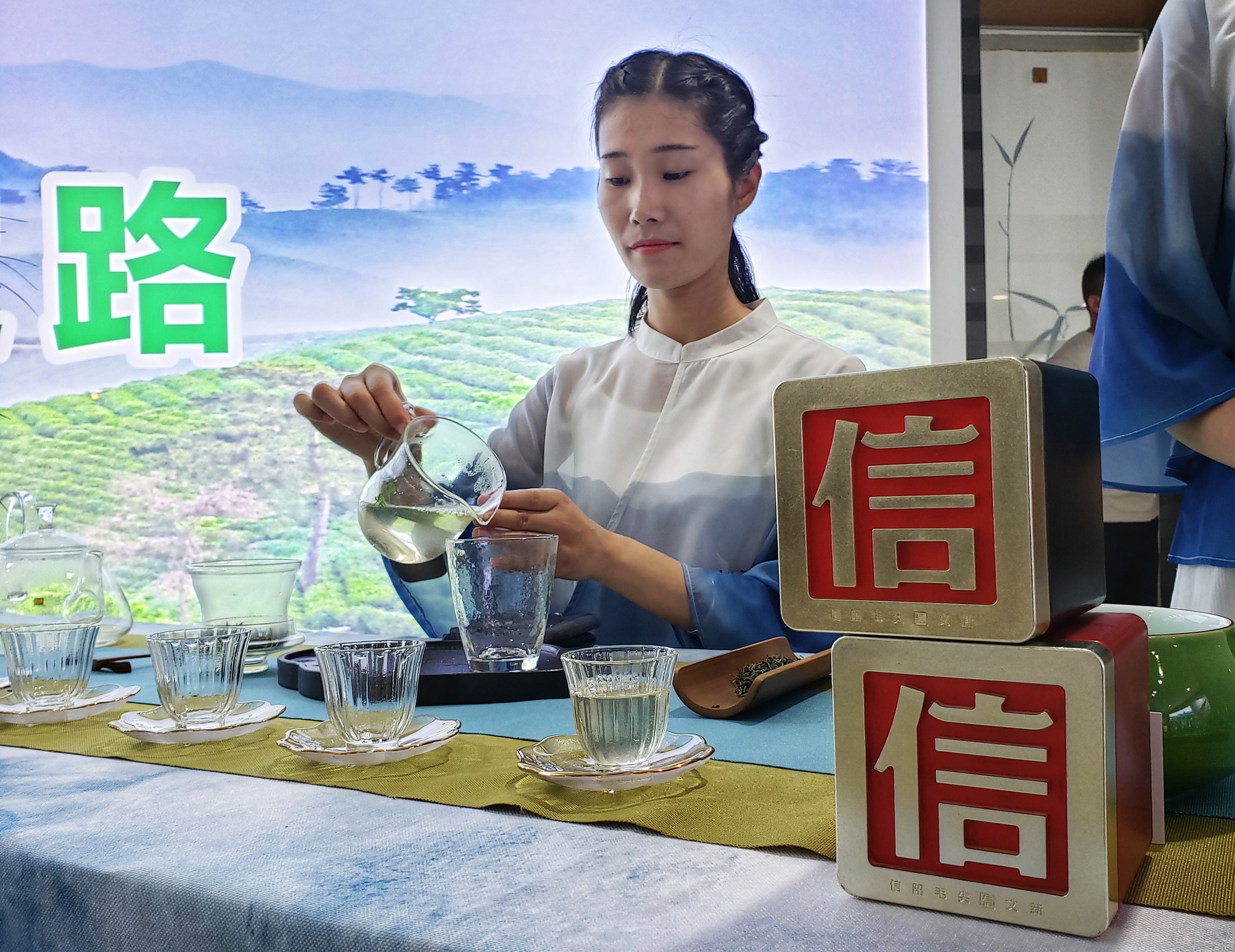 在会前的展览展示环节,清香的毛尖茶、薄如蝉翼的非遗叶雕、剪纸和淮滨泥叫吹等信阳特色非遗项目,带给大家清新的味觉、视觉体验。新中国成立以来的70年,是信阳人民在党的领导下与贫困落后作斗争的70年。70年来,伴随中华民族从站起来、富起来到强起来的壮阔历程,老区信阳发生了翻天覆地的变化,生产总值从1949年的1.32亿元增加到2018年的2387.8亿元,人均生产总值从36元增加到36941元,这既是革命老区沧桑巨变的见证,也是新中国繁荣富强的缩影。
