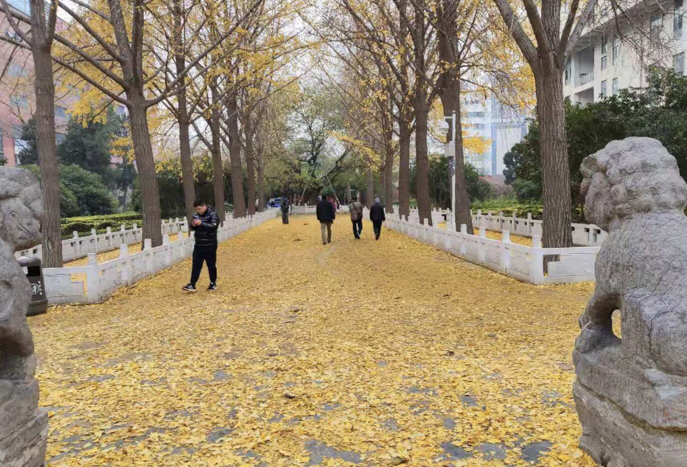 美翻天!郑州人民公园落叶成景