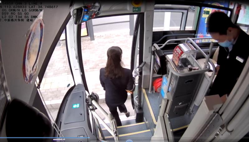 赵鹏飞仔细查看车辆其他位置的监控发现该车车长李慧英和防疫监督员郭海峰在车辆后门处扶老人……
